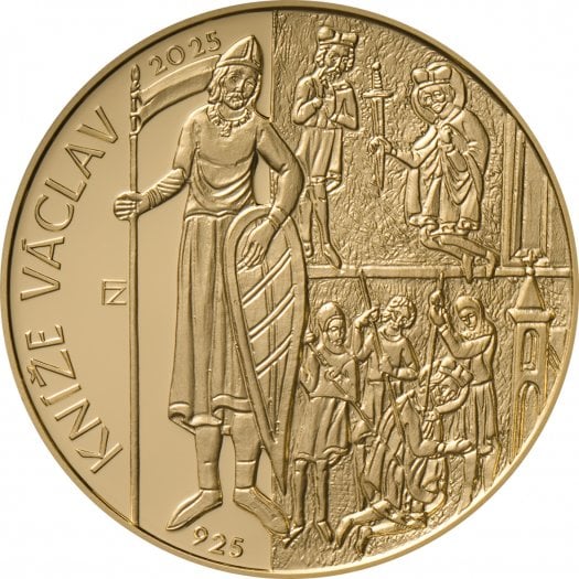 Počátek vlády knížete Václava se datuje do období mezi lety 922–925. Kníže Václav byl významný panovník, ale také první český světec. Je považován za patrona naší země. Centrální banka ho připomíná mincí vyrobenou z ryzího zlata (ryzost 999,9) o průměru 34 mm a síle 2,5 mm. Mincí je celkem 7200 kusů, přičemž část jich bylo vyraženo v běžné kvalitě s matovaným polem i reliéfem a část ve špičkové kvalitě s leštěným polem a matovaným reliéfem.