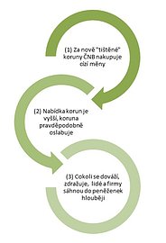 Úřad české centrální banky ve světle těchto skutečností nedávno zahájil devizové intervence, aby oslabil korunu a zajistil, že domácí cenová hladina bude růst podle jejich představ. Je to důsledek měnové politiky, strategie cílování inflace, která ovlivňuje kupní sílu korun v našich peněženkách a na našich účtech. Za stejné množství peněz si toho díky souvisejícím politickým opatřením budeme moci koupit zase o něco méně. Ceny spotřebitelského koše totiž mají být v důsledku přijatých opatření cíleně zvýšeny, protože je používána inflační politika, která snižuje kupní sílu našich úspor denominovaných v korunách.