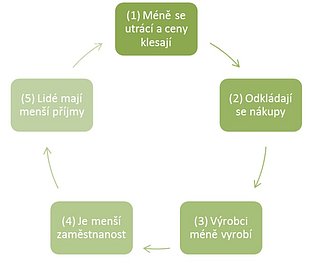 Protože se aktuálně ceny nezvyšují, jak by podle představ tvůrců české měnové politiky měly, úřad centrální banky aktivisticky přistoupil k devizovým intervencím. Inflace prostě klesá a leccos naznačuje, že trend poklesu cen by mohl pokračovat i nadále. Ceny klesají nejenom u nás, ale i ve světě. Důvodů je mnoho, od zdrženlivé poptávky, klesajících světových cen komodit, až po působení globální konkurence na ceny obchodovatelného zboží. Vypadá to, že s tím, jak aktuálně klesá růst cen potravin, pohonných hmot a jak kupující své nákupy krotí, cenová inflace by bez intervencí klesla k nule. Tvůrci měnové politiky se obávají, že ceny budou klesat, což podle jejich komentářů znamená deflační spirálu.