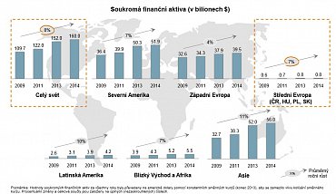 Podle studie Global Wealth Report 2014 společnosti The Boston Consulting Group (BCG) se finanční aktiva* domácností po celém světě v letech 2009 až 2014 zvyšovala 8% tempem ročně, rychleji, než rostla globální ekonomika.