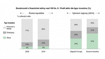 Finanční aktiva v hodnotě přesahující částku 100 tisíc USD má 200 tisíc českých domácností, což představuje asi 5% podíl. V západní Evropě je to obecně 61 % domácností a v USA 54 %.