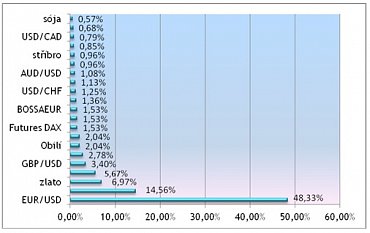 Graf dokazuje, že soutěžící na reálných účtech rádi obchodují nejen měnové páry, ale také komodity. Oblíbenost komodit, dokazuje i fakt, že právě na ropě byly uskutečněny oba nejziskovější i nejztrátovější obchod týdne.