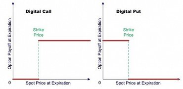 Digital options jsou opce, u kterých je odměna (výše plnění) charakterizována pouze 2 potenciálními možnostmi: odměna je buď dána fixně, pokud je opce v penězích (in the money = v rámci nákupní-call opce je spotová cena podkladového aktiva v době realizace opce vyšší než dohodnutá realizační cena – strike price, pro prodejní opci je tomu přesně naopak), nebo je nulová. Odměna zůstává stejná bez ohledu na skutečnost, jak moc v penězích opce je.