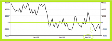 S exportem komodit souvisí i druhá potenciální hrozba pro kanadský dolar, a tou je obchodní bilance. U ní se loni začal výrazně projevovat klesající export. Narůstající rozdíl mezi dovozem a vývozem zboží a služeb je možné vidět na grafu níže.