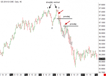Všechny tyto čtyři skupiny obchodníků tedy vytvoří na vrcholu č. 3 silný prodejní tlak a následuje dokončení formace dvojitý vrchol a otočení trendu. Na tomto příkladu je dobře vidět, že i v takovém „chaosu“, jakým jsou cenové grafy, lze hledat určitou logiku. Najít tuto logiku je právě úkolem technického obchodníka.
