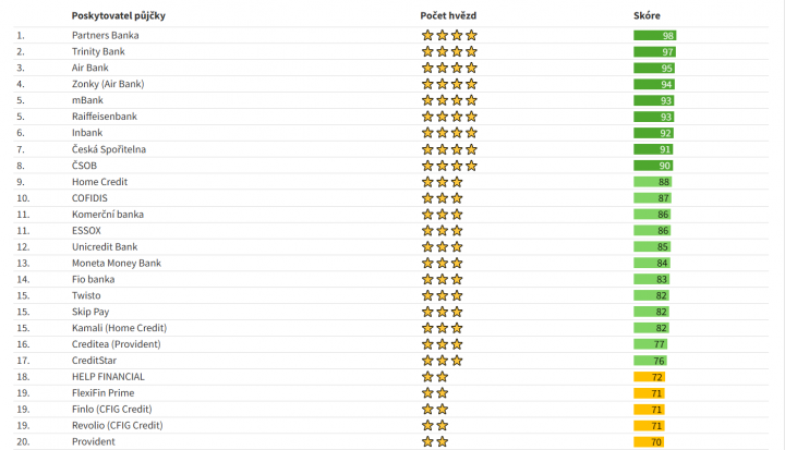 Aktuální žebříček nejodpovědnějších úvěrových společností přitom ovládli dva nováčci – Partners Banka a Trinity bank, které na trh spotřebitelských úvěrů vstoupily teprve letos.