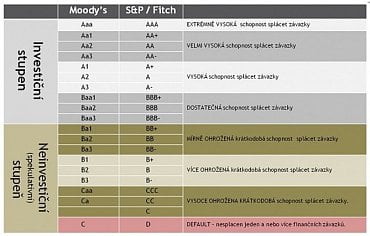 Stupně hodnocení u vybraných ratingových agentur